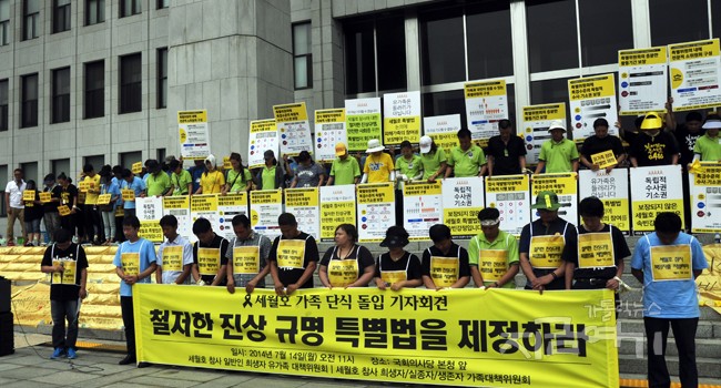 정부가 배상이니 보상이니 하면서 세월호 참사 희생자들의 목숨에 값을 매기고 있던 그 시각에 유가족들은 세월호 특별법 시행령 폐기를 요구하며 광화문 광장에서 농성을 하고 있었다. 정부가 특별법의 취지를 무력화시키고 있기 때문이다. 세월호 특별법을 만들 때까지도 유가족들에게 조사권과 기소권을 절대로 줄 수 없다고 배짱을 부리더니, 이젠 시행령으로 진상조사가 아예 어렵게 못박아버린 것이다. 진상을 규명할 특별조사위원회의 기획조정실장으로 해양수산부 고위공무원을 앉히고 조사 범위도 정부 조사결과를 검토하는 수준으로 떨어뜨리는 등 사실상 정부 입맛대로 조사를 진행하게 됐다. 유가족들은 진상규명을 요구하는데, 정부는 이러한 요구엔 귀를 막은 채 보상금만 크게 떠들어대고 있다.