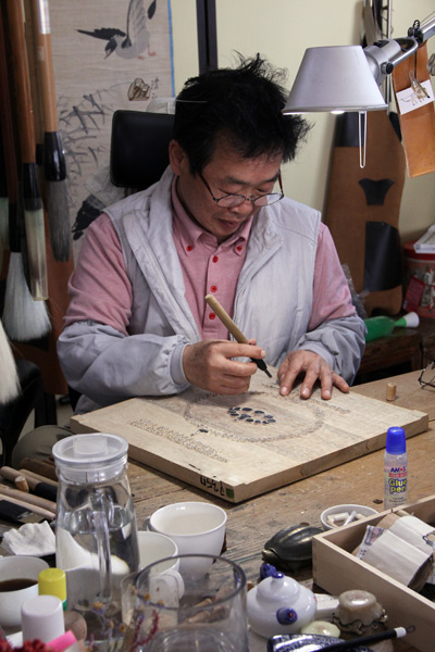 사각사각 목판의 나무를 벗겨내는 소리, 봄바람에 흔들리는 풍경소리와 함께 이화백의 작업실 넓은 창문으로 들어온 오후 햇살이 한 순간을 그림으로 잡아 보여주고 있었다. 얼마 전 30주년 선집을 내면서 그는 아직 자기 마음대로 사는 게 아니라 세상이 시키는 대로 사는 것 같다고 말했다. 그러나 그가 보내는 ‘나뭇잎 편지’의 수신인이 7만여 명을 훌쩍 넘는다.