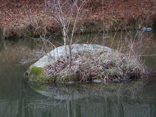 흐르는 계곡물 가운데