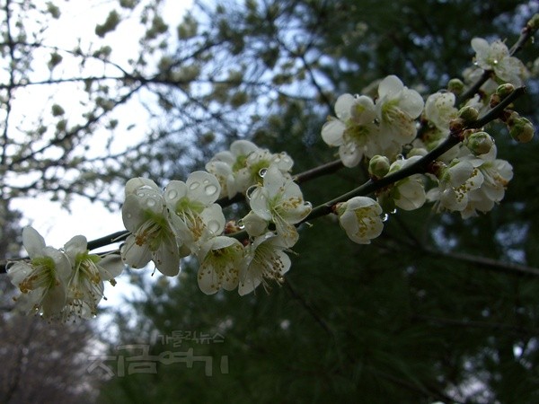 밤새 내린 봄비 머금은 꽃이