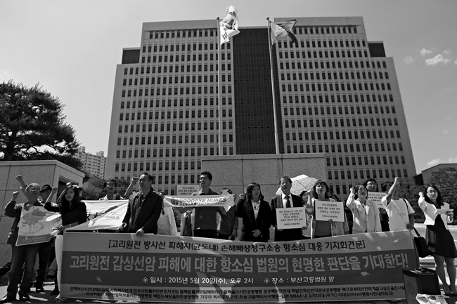 5월 20일(수) 오후 5시, 고리핵발전소 방사능에 의한 주민의 갑상선암 피해에 대한 한수원의 책임을 묻는 ‘균도네’ 소송의 항소심 첫 공판이 부산고등법원에서 열렸다.