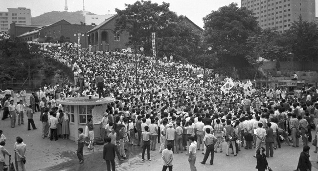 1987년 한 해는 거의 30년 동안이나 지속되어온 군사독재를 무너뜨리고 민주화를 이룩하기 위한 각계각층의 민주화운동이 줄기차게 전개된 해였다. 지난 번 글에도 언급한 것처럼 1987년 6월민주항쟁은 가깝게는 1월 14일 남영동 대공분실에 연행되었던 서울대생 박종철 군 고문치사 사건이 그 계기가 되었다. 즉 이 고문살인 사건의 진상을 천주교 정의구현전국사제단이 폭로하면서 전두환 정권에 대한 국민들의 분노가 불붙기 시작한 것이다. 거기에다 대통령 전두환의 ‘4.13호헌선언’은 장작불에 기름을 끼얹은 격이었고, 연세대생 이한열의 최루탄 피격은 국민들의 분노를 극도로 자극하였으며, 이들의 분노는 군부독재 종식과 직선제 개헌을 위한 6월민주항쟁으로 발전했다.