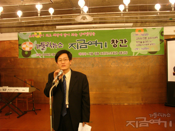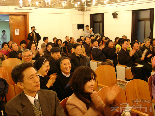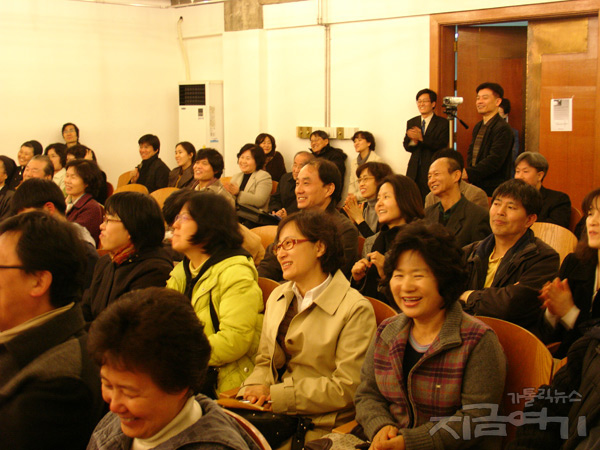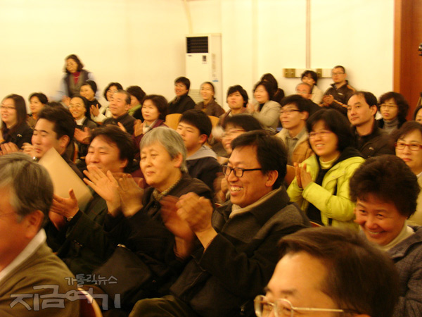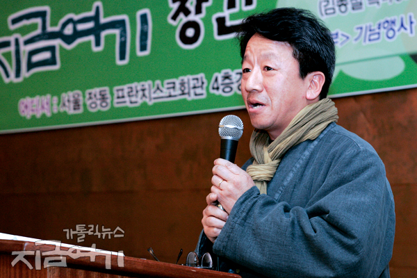 김종철 선생의 강연을 진지하게 듣고 있는 참석자들...모든 권력에 반대하고 자유로운 영혼들의 투신을 촉구한 이반 일리히를 소개하는 김종철 선생<지금여기> 창간의 깊은 의미를 새기면서 사회를 맡아주신 김유철 선생경과보고를 하고 있는 한상봉 편집국장<지금여기>에 힘을 보태달라고 호소하는 홍성훈 <지금여기> 발행인 <지금여기>에 박수를 아끼지 않는 참석자들의 얼굴이 환하다. <지금여기> 이사들의 (이충래, 김원호, 김형태, 홍성훈, 김중현, 엄종희, 변연식)의 기념 덕 자르기. 이날 호인수 신부는 본당 판공으로 참석하지 못해서 아쉬워했다. 심청전의 심봉사 눈뜨는 장면을 열창해 주신 김경아 선생예언자의 역할을 잘 수행해 달라고 부탁하는 예수회 김정대 신부촛불집회에서 <지금여기>로 인해 덜 외로웠다고 전하는 박순희 천정연 대표따뜻한 음색으로 축하노래를 불러준 유신애 님단호하면서도 매화향기처럼 은은한 언론이 되길 바라는 김지영 가톨릭언론인회 회장미국교회의 대안언론의 사례를 들어 말씀해 주신 메리놀 외방선교회 하유설 신부 사진/ 고동주. 김용길