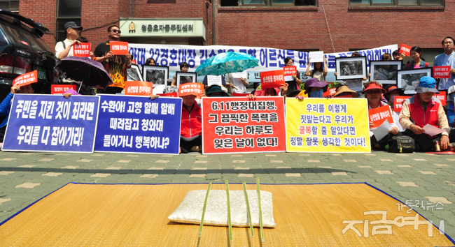 이날 기자회견에 참석한 주민과 연대 단체들은 당시 100여 명이 응급 후송되고, 행정대집행 뒤에 주민 47명이 250차례나 정신과 치료를 받고 있으며, 공무집행방해 등으로 사법처리되었음에도 책임자가 영전한 것에 항의하며, 김수환 경호대장의 파면, 행정대집행 책임자 처벌과 공개 사죄를 요구했다.