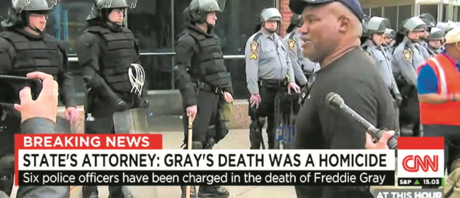 4월 19일, 미국 볼티모어에 살던 26세 흑인청년 프레디 그레이(Freddie Gray)가 백인 경찰의 강경진압과 부당한 대우로 사망했다. 2014년 미주리에서 일어난, 역시 백인경찰의 강경진압으로 초래된 흑인소년 마이클 브라운(Michael Brown)의 죽음에 이어, 미국사회 인종차별의 심각한 면면을 드러낸 사건이다. 그레이의 죽음에 대한 진실과 책임자 처벌, 정의를 요구하는 시위로 한동안 미국 전역이 들썩였다. 볼티모어에는 주 비상사태(State of Emergency)가 선포되었고, 4월 28일에는 정의와 평화를 요구하는 종교인 행진도 있었다. 실제 볼티모어에 살며 시위에 동참한 동료들의 이야기를 듣자면 시위 자체는 대체로 평화로웠다고 한다. 그러나 사건보도의 '공정성'과 '객관성'을 자랑한다는 미국 주류언론을 통해 시민들에게 비춰진 볼티모어 시위의 이미지는 흑인들이 상점을 부수고, 물건을 약탈하고, 차를 불태우고, 도로를 점거하는 '폭력적인' 모습이었다.
