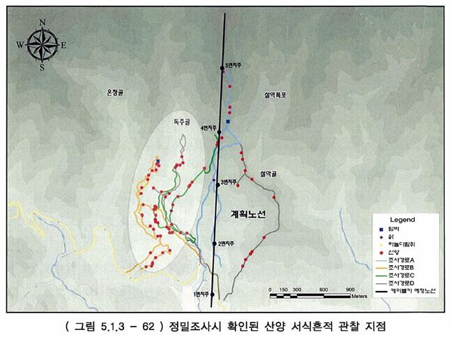 먼저 양양군 사업계획에 따르면, 케이블카 예정지는 멸종위기종 ‘주요 서식지’가 아니며, 식생 역시 20년 정도의 수령으로 일부 식생훼손이 불가피하지만 보전가치가 크지 않다는 주장이다.