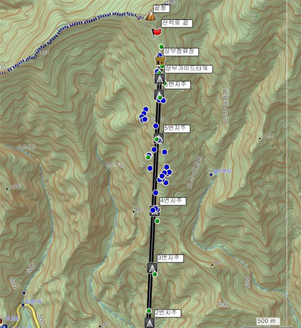 가이드라인은 삭도를 설치 할 때 주요 봉우리는 피하도록 규정하고 있지만, 오색케이블은 주요 봉우리인 대청봉과 끝청봉에서 불과 203미터 거리다. 양양군은 끝청봉과 상부정류장이 430미터 떨어져 있다고 하지만, 조사 결과 전망데크와 산책로를 기준으로 하면 203미터 밖에 떨어지지 않으며, 기존 탐방로는 불과 140미터 거리에 있어 통제가 불가능하다는 것이 범대위의 입장이다. 지난 2차 사업 계획의 경우 주요 봉우리와 상부정류장이 1012미터 떨어졌음에도 부결됐다.