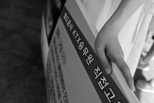부산역에서 “철도공사가 KTX 승무원을 직접 고용하라”는 선전전에 나온 KTX 해고 승무원은 5살이 된 아들과 3살이 된 딸을 둔 엄마다. 그이는 자꾸만 눈에 밟히는 아이들을 부모님께 맡기고 선전전에 나왔다. 금방이라도 눈물을 왈칵 쏟아 낼 것 같은 그이의 불안한 눈동자에서는 불확실한 미래에 대한 두려움과 이 시대의 거짓에 대한 분노가 함께 했다.
