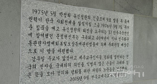 천년 파도가 다시 너희들의 무지를 허물고 구럼비 바위를 따라 세상 모든 바위들이 함께 일어설 것이다. 어느 핵폭발보다 거대하고 존엄한 연대의 행진이 계속 이어질 것이다”