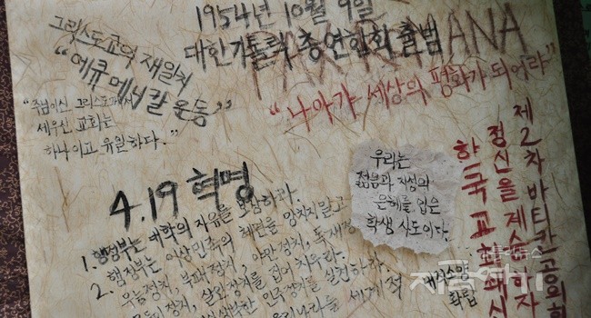 그러나 더 나은 미래를 위해서라도 과거의 잔해들을 더더욱 끈질기게 응시해야 한다. 가톨릭학생회에게 지금 필요한 건 ‘통일’이나 ‘자본주의 문제 해결’ 같은 구호를 내건 경선이 아니라 각 학교의 일상에서 예수를 따르는 삶에 대해 구체적으로 경험해보고 고민해볼 수 있을 방법들이다. 오랫동안 그러한 방법들을 찾아보고자 애썼던 노력들이 과거의 잔해들로 남아있다. 너무 빨리 미래로 고개를 돌려선 안 되는 이유다.