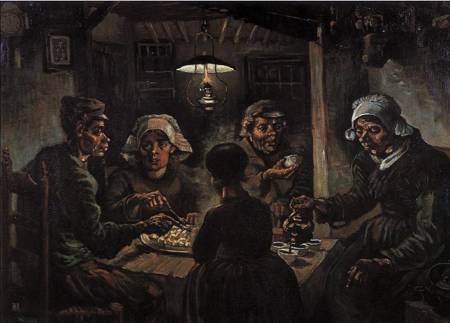 어디선가 김훈은 “사내가 된다는 것은 어디선가 제 밥벌이는 하는 것”이라고 말한 적이 있지요. 자못 비장하고 우울한 고백입니다. 삶이 그만큼 엄혹하다는 현실인식입니다. 배터리가 다 떨어지면 꼬르륵 하고 의미 없는 유언을 남기고 죽어버리는 휴대폰을 떠올리며, “이 꼬르륵 소리는 대선사들의 오도송(悟道頌)보다도 더 절박하게 삶의 하찮음을 일깨운다.”고 했습니다. 죽을 때까지 먹어야 하는 ‘진저리 나는 밥’을 버는 것은 그래서 하찮고, 그래서 거룩합니다. 빈센트 반 고흐가 ‘감자 먹는 사람들’을 최고의 작품으로 삼는 것도 이유가 있었던 거지요. 광부들의 다 헤진 구두와 씨 뿌리는 사람의 등 뒤로 작열하는 태양도, 노동의 고단함과 밥벌이의 거룩함이 짝을 이룬다는 사실을 잘 보여줍니다.