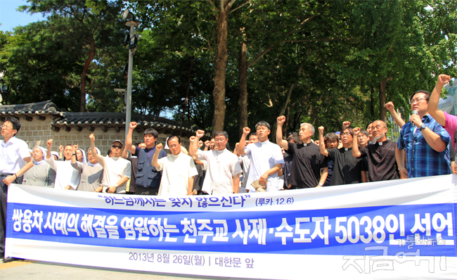 그 뒤 주교회의 정평위는 교구와 교계 조직, 소속을 불문한 사제, 수도자 서명운동을 벌였다. 대선 후보 시절 쌍용차 문제 해결을 약속한 박근혜 대통령의 약속 이행을 촉구하고, 쌍용차 문제를 잊어서는 안 된다는 절박함으로 진행된 서명운동에는 5038명이 참여했다. 2013년 8월 26일 ‘쌍용차 사태의 조속한 해결을 염원하는 선언’을 발표한 이들은 “더는 잊지 않고, 더 이상 한 생명도 잃지 않을 것이며, 대통령의 약속이 지켜질 때까지 또렷이 기억하며 정의롭게 다그쳐, 세상의 거짓 약속을 부끄럽게 할 것”이라고 다짐했다.