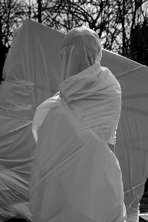 시민들에게 공개하기 전 천으로 가려진 모습입니다.