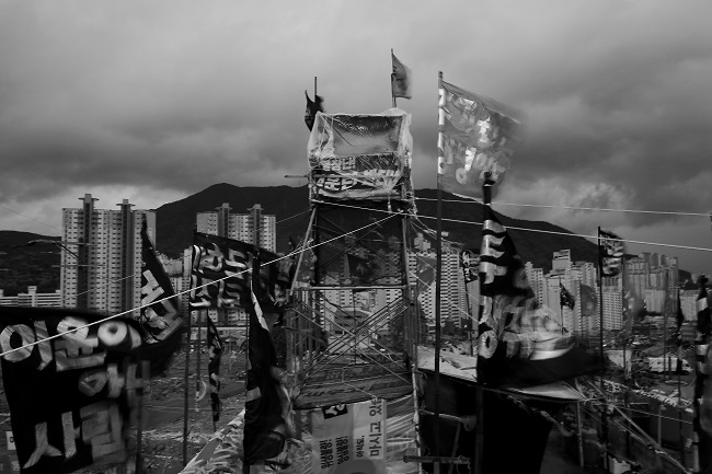 부산에는 밤새도록 비바람이 거셌습니다. 봄비라기보다는 장맛비처럼 주룩주룩 비가 내립니다. 비가 쏟아지는 가운데 만덕주민공동체 최수영 대표는 철탑 고공 농성 15일차를 맞습니다. 그가 철탑을 짓고 고공 농성을 선택한 것은 어디에도 갈 곳이 없었고 머리 둘 곳이 없었기 때문입니다.
