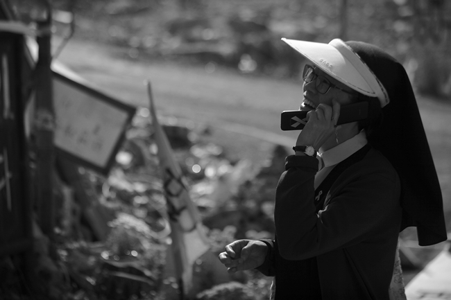 이른 아침, 만덕주민공동체를 촬영하고 있었습니다. 여러 현장에서 자주 만났던 수녀님 한 분이 만덕주민공동체 언덕길을 올라오시는 것을 발견합니다. 수녀님은 마치 오랜 친구를 만난 듯 반가워하며 제 손을 덥석 잡습니다.