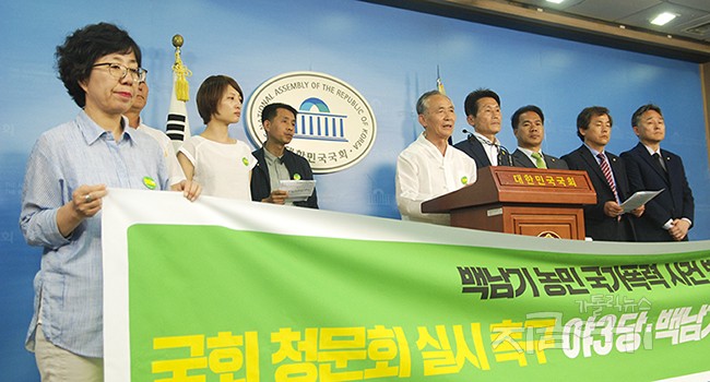 경찰의 물대포 진압으로 가톨릭 농민 백남기 씨(임마누엘, 68)가 중태에 빠진 뒤 200일째다. 5월 31일, 가족 대표와 대책위, 세 야당 의원이 국회에서 기자회견을 열고 청문회를 요구했다. 이날 야3당 원내수석부대표들이 백 씨 사건에 대한 청문회를 국회 안전행정위원회에서 열기로 합의했다고 밝힘에 따라 앞으로 결과가 주목된다.
