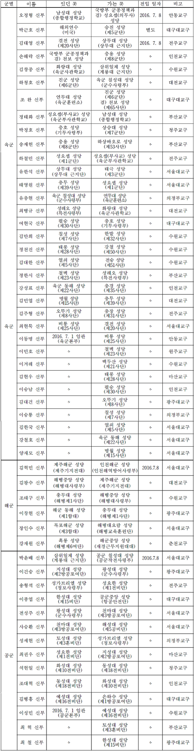 천주교 군종교구 사제 인사(2016.06.27) <가톨릭뉴스 지금여기 http://www.catholicnews.co.kr> 관련기사 [단신] 군종교구 사제 인사 (2015.06.25) 왕기리 기자 bene@catholicnews.co.kr 다른기사 보기 저작권자 © 가톨릭뉴스 지금여기 무단전재 및 재배포 금지 당신만 안 본 뉴스 "인공지능은 도구일 뿐, 책임은 오로지 인간의 몫" 번영이라는 신기루에서 벗어나는 2026년 수도자 - 하느님 백성의 필수 구성원 아무도 미워하지 않는 어느 미등록 이주 노동자의 죽음 얼룩무늬 청춘의 흔적들 - 군대 같던 나라의 군복무 부산물 줄 세우지 않는 평등한 사회를 시노드 이행과 청년 고립... 해법은 '경청, 동반, 연속성' "인공지능은 도구일 뿐, 책임은 오로지 인간의 몫" 라이브리 댓글 작성을 위해 JavaScript를 활성화 해주세요 주요기사 제주4.3 은인, 문상길 중위 찾아 안동 까치구멍집으로 우리에게 필요한 트리아지 형이상학적인, 너무나 형이상학적인: 일체·삼위 개념의 탄생 [새책] “자연스럽다는 말”, “한번 읽어 봅시다!” 교황청 미성년자보호위원회 2024년 보고서 - 한국 천주교회 편 미 주교단, 트럼프 '무차별 대규모 추방'에 정면 반대