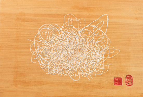 제주도 강정에서 5년 넘게 지내 온 문 신부의 새김판 작업장은 해군기지 건설 공사장 앞 천막이다. 투쟁의 한복판에서 그는 “시간을 죽이기 위해 붓을 들고 판에 올려서 파고 팠다.”