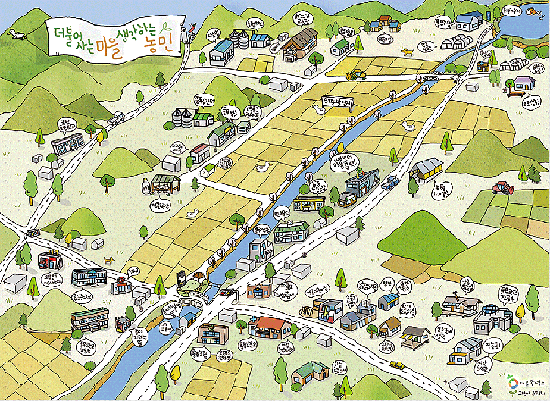 단체 형태뿐만 아니라 마을 사람들은 각자의 처지와 관심사, 세대별로 필요한 내용을 자체적으로 충족한다. 귀농한 어르신들을 위한 귀농센터, 장애아들을 위한 교육 센터와 활동을 위한 원예센터, 한가족 자녀와 돌봄이 필요한 아이들을 위한 멘토, 멘티 프로그램 등이다. 생태적 건축을 고민하다가 건축조합을 만들고, 농가대출을 고민하면서 경제협동체를 만들며, 농업 에너지 자립을 위해 적정기술을 연구하는 식이다. 이 모든 것은, 지금 더불어 행복하고, 우리 아이들에게 함께 행복할 수 있는 이웃을 만들어 주기 위해서다.