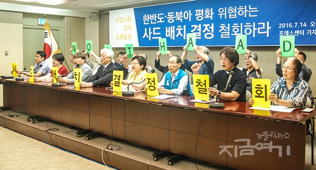 이들은 시민사회단체, 종교계의 협력기구인 ‘한반도평화회의’ 제안으로 7월 14일 오전 한국프레스센터에서 열린 시국회의에서 사드 배치에 반대하는 범국민행동을 호소하는 결의문을 내기로 하고, 기자회견을 열었다. 천주교에서는 문규현, 안충석, 곽동철 신부, 김형태 변호사 등 30여 명의 개인과 남자수도회 사도생활단 장상협의회 정의평화환경전문위원회, 작은형제회 정의평화창조질서보전 특별위원회, 천주교인권위원회가 결의문에 참여했다.