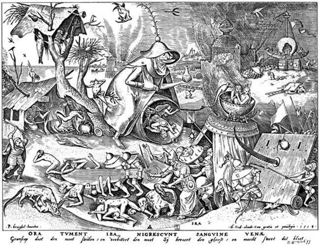 분노(Ira)는 아주 기본적인 감정 중에 하나다. 종종 억울한 일을 당하거나, 옳지 못한 일을 경험했을 때 분노와 증오의 감정이 나타난다. 그래서 분노하는 사람은 흔히 자신이 의로운 용기, 혹은 고귀한 저항을 하고 있다고 여긴다. 분노의 원인은 늘 다른 사람에 있기 때문에, 분노가 잘못이라고 생각하기 어렵다. 분노하게 만들었으니, 분노할 수밖에 없다는 것이다.