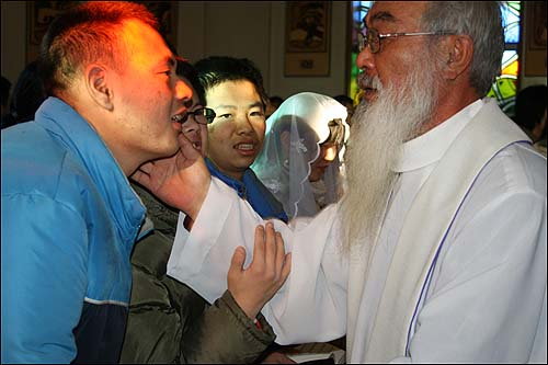 제단에서 축성된 성체를 아이들 입에 넣어준다. 먹이를 물어다 먹이는 어미 새의 사랑처럼 그렇게 아이들을 보살펴 왔다. 자신의 몸을 인류 구원을 위해 바친 예수처럼 사제 삶의 반 21년을, 아이들에게 바친 희생적인 삶을 성체로 나누어 주고 있었던 것이다. 그리스도의 최후의 만찬도 이러했으리라.