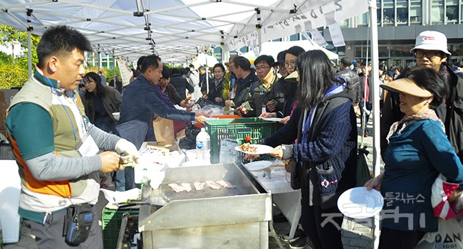 서울대교구 우리농촌살리기운동본부가 주최한 이번 행사에는 각 교구 우리농촌살리기운동본부 생활공동체와 가톨릭농민회 회원들이 참여해 교구별 특산품과 제철 농산물, 가공품 등을 선보였다. 또 가톨릭회관 앞마당에서는 김치와 전어회 무침, 부침, 삼겹살 구이 등도 즉석 먹을거리로 제공해 시민들이 발길을 붙들었다.