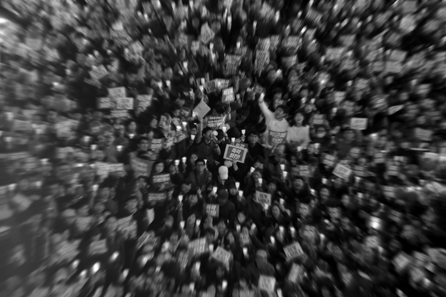 길 위에서 만난 사람들조차 지금 현재 벌어지고 있는 현실을 믿을 수가 없다고 합니다. 초등학생에서부터 노인에 이르기까지 촛불을 들고 밤길의 아스팔트를 걷고 있습니다. 헤아릴 수 없는 수많은 민중들은 자괴감에 빠져 있습니다. 차별 없는 평등한 나라를 꿈꾸었던 분노한 민중들이 말하는 것은 “도대체 이게 나라냐”라는 것입니다.