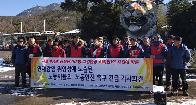12월 29일 서울대공원에서 일하는 현장노동자와 민주노총 서울일반노동조합 서울시공무직분회가 기자회견을 열고, H5형 고병원성 조류인플루엔자(AI)에 대한 서울대공원의 대응에 문제를 제기했다.