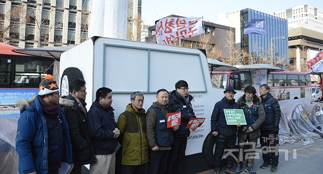 김득중 지부장 등 금속노조 쌍용차지부 간부와 해고자들이 1월 10일 서울 광화문광장에서 “농성투쟁”을 선언했다. 쌍용차뿐 아니라 현대차, 하이디스 등 기업과 국가가 노동자들에게 제기한 손해배상 소송을 철회하라고 요구하기 위해서다.