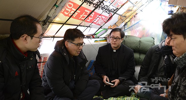 2월 6일부터 3일간 열리는 ‘전국 노동사목 관심 신학생 연수’에 참여한 신학생들은 둘째 날인 7일, KTX 승무원 노조, 콜트콜텍 농성장, 삼성본사 앞 반올림 농성장, 광화문 동양시멘트 농성장 등 네 곳의 현장을 찾았다.