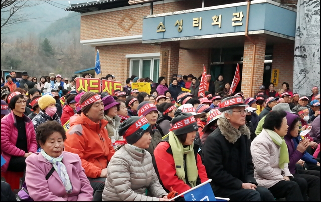 도경임(79.초전면) 할머니는 "처음에는 막막했다. 이놈들이 우리한테 이렇게 뒷통수를 칠 줄 몰랐다"면서 "그래도 밥 잘먹고 힘낼거다. 매일 촛불집회도 하고 있고, 여러 지역에서도 우리를 도우러 왔다. 끝까지 싸워서 몰아낼 거다"고 말했다.