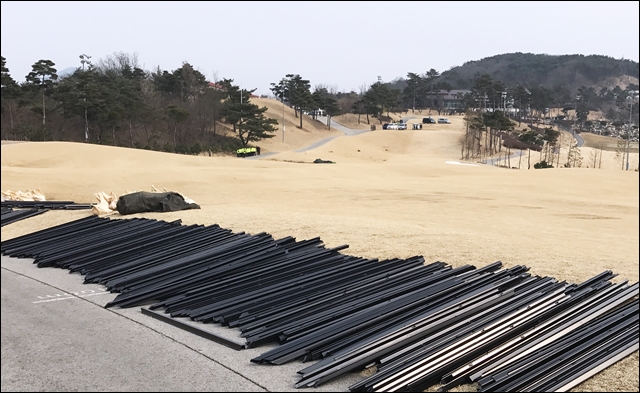 1일 오후 삼엄한 경계를 뚫고 들어선 골프장 내부에는 오직 군인과 경찰뿐이었다. 수백m마다 3~4명의 군인이 경계를 서고 있었으며 곳곳에는 경찰병력도 대기하고 있었다. 주차장에는 경찰버스만 주차돼 있었고, 푸르렀던 잔디 위에는 군사시설 지정에 따른 철조망 설치를 위한 준비가 한창이었다. 미지의 공사를 위한 땅은 파헤쳐져 있었고, 나무와 풀은 예초기로 베어져 있었다.
