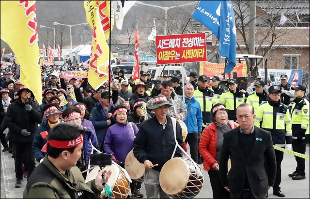또 골프장에서 가장 가까운 마을인 초전면 소성리 마을 주민들은 정부의 이 같은 결정에 망연자실한 심정을 감추지 못하면서도 정부의 졸속적 사드배치 강행에 반발하고 나섰다. '사드배치철회 성주투쟁위원회', '사드배치반대 김천시민대책위원회'를 비롯한 전국의 사드반대 단체 활동가 200여명은 이날 오후 2시부터 1시간가량 마을회관 앞에서 집회를 가진 뒤 롯데골프장 쪽으로 500m가량 행진했다.