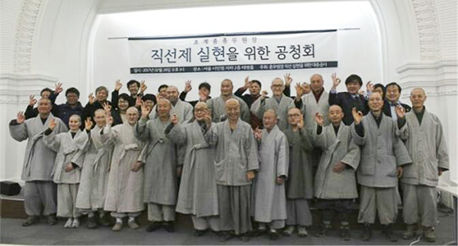 한편, 총무원장 직선 실현을 위한 대중공사는 지난해부터 서명운동과 동영상 제작, 공청회를 통해 직선제 운동을 펼쳐 왔다. 지난 2월 28일 열린 공청회에서 단체 발기인을 모집해 재가자 153명, 승려116명이 참여했다.