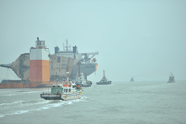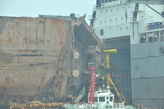 이른 새벽, 비가 무척 옵니다. 혹시 이 비로 목포 신항으로 세월호를 옮기는 것이 또 연기되는 것은 아닐까? 걱정을 했지만 계획대로 31일 오전 7시에 세월호는 마지막 여행을 떠났습니다.