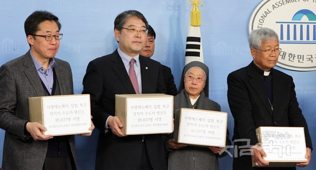 지난 6월 22일 국회에서 ‘사형제도 완전 폐지를 위한 국회, 종교, 사회, 인권단체 간담회’가 열렸다. 이 자리에 모인 천주교, 개신교, 불교, 원불교 등 종교인들과 시민사회단체 대표들은 이번 20대 국회에서 특별법을 통과시켜 사형제를 완전히 폐지해 줄 것으로 호소하고, 이를 위한 활동 계획을 의논했다.