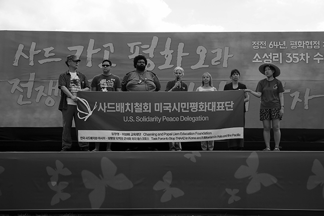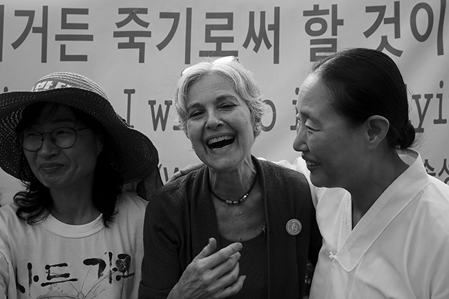 질 스타인 씨는 “미국 정부는 한반도의 평화를 원하지 않는다”고 단언했다. “전쟁은 미국 군수산업계의 생존에 필수적이다. 기존 주요 정치 세력인 민주당과 공화당은 한국에서 평화를 원하지 않는다. 록히드 마틴 같은 군수산업체는 미국 의회에 끊임없이 로비를 한다. 그렇기 때문에 평화를 이루는 방법은 두 가지가 있다. 첫째는 시민들이 스스로의 힘으로 평화를 이끌어 내는 방법이며, 둘째는 무지막지한 군사무기와 군수산업체를 멈추는 방법이다"고 말했다.
