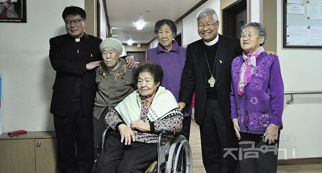 그때 취재했던 나의 취재수첩에 김군자 할머니의 특별한 발언이 남아 있지는 않았을까 하는 기대로 열심히 살펴봤지만, 아쉽게도 기사에 담기 쉬운 내용은 없었다. 김 할머니가 유 주교에게 자신의 방을 보여 주고, 축복과 안수를 받는 모습은 사진으로 남았다.