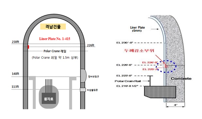 원자력안전위원회는 27일 한빛 4호기와 고리 3, 4호기에 대한 조사 결과를 발표했다. 원안위는 우선 “한빛 4호기의 CLP 최상단 구간에서 (부식에 따른) 두께 기준 미달 부위가 120곳 발견됐으며, 이는 일부 구간에서 콘크리트가 채워지지 않아 수분이 들어가 부식이 진행된 것으로 판단된다”고 밝혔다.