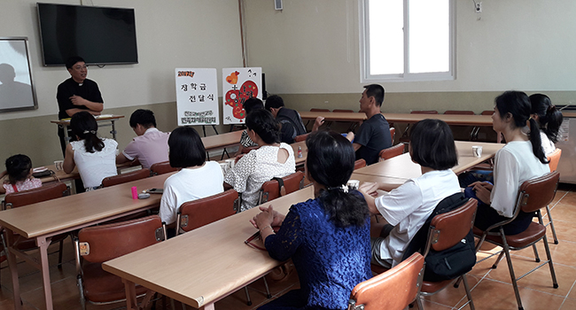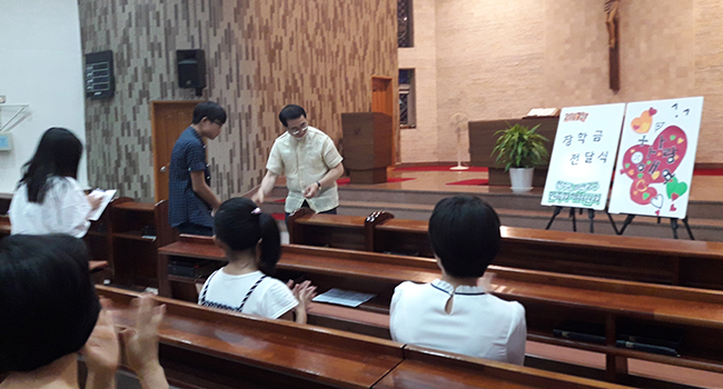 김 신부는 “새터민(탈북자) 중 천주교 신자 비율은 미미하다”며 “본당에서 새터민들을 방문할 겸 자녀들 학비에 조금이나마 도움을 드리고자 노력하는 것”이라고 설명했다. 매년 700-800만 원이 드는 장학기금은 민화위 후원회원들이 십시일반 모아서 마련하고 있다.
