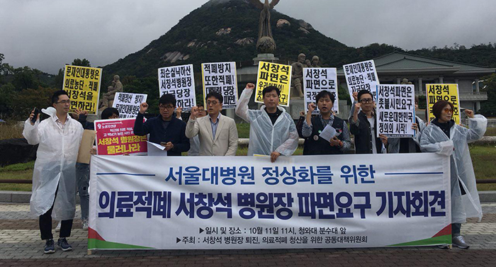 서울대병원 노조는 현재 서창석 병원장 파면을 요구하고 있다.