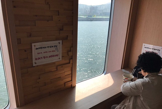 배는 그렇게 사연과 노래와 춤을 싣고, 또 의혹을 안고 밤을 지새워 바다를 떠갔다. 다음날 아침이 되자 창 너머로 희부연 실체가 보였다. 이국의 땅과 건물과 사람, 내가 잠시 살게 될 모든 것들이 거기에 있었다. 하루가 걸려서야 오고 만 일본의 오사카라는 땅이었다.