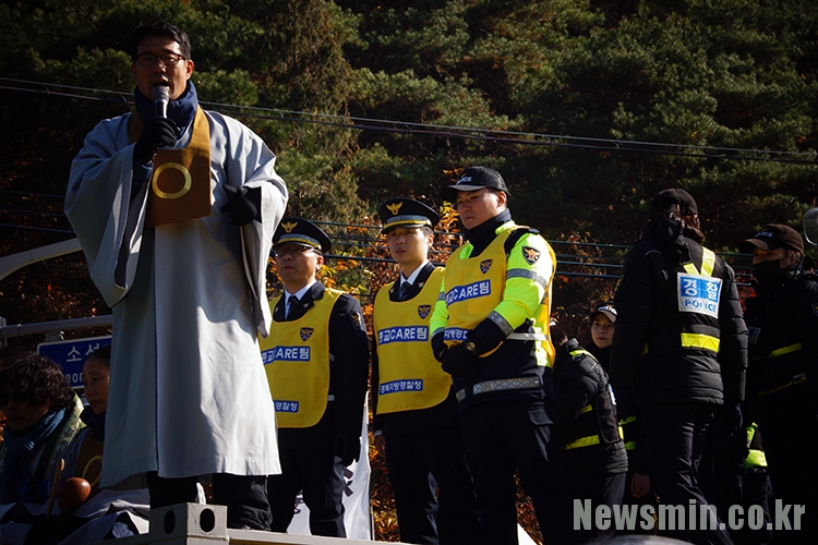 강현욱 교무는 “문재인 정부가 절차적 정당성을 지키겠다고 선언했듯이, 모든 공사는 일반환경영향평가, 혹은 전략환경영향평가를 끝내고 진행해야 한다”며 “170명 인원밖에 수용되지 않는 공간에 400명을 밀어넣고서 지금 건물리모델링을 하겠다고 한다. 이는 아무 준비도 되지 않는 부지에 사드 사업부터 진행했다는 방증이다. 누가 불법을 저지르고 있나. 170명만 유지하고 나머지 인원은 빼는 것이 임시 배치에 합당한 일일 것”이라고 말했다.