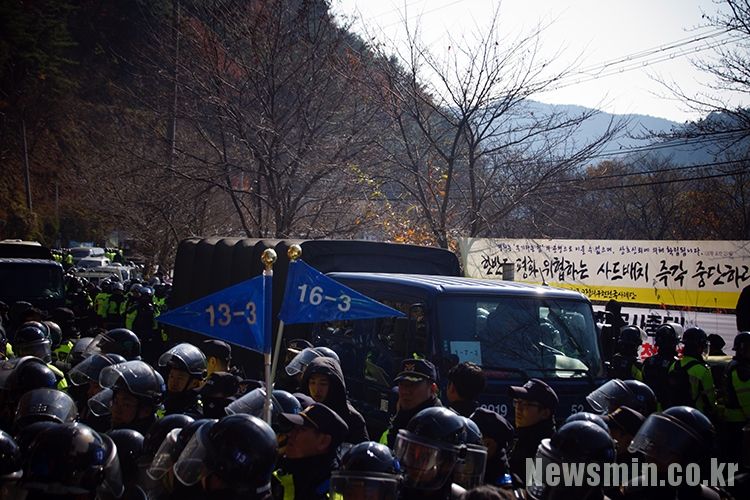경찰은 지게차, 구난차, 안전매트 등을 이용해 4시간 동안 천천히 강제해산을 진행했다. 또, 9월 7일에 이어 두번째로 ‘종교CARE’팀을 꾸려 성직자들도 해산시켰다. 12시 50분께부터 경찰이 진입로를 확보한 가운데 공사 장비를 실은 트럭 63대가 사드 기지 안으로 들어갔다.