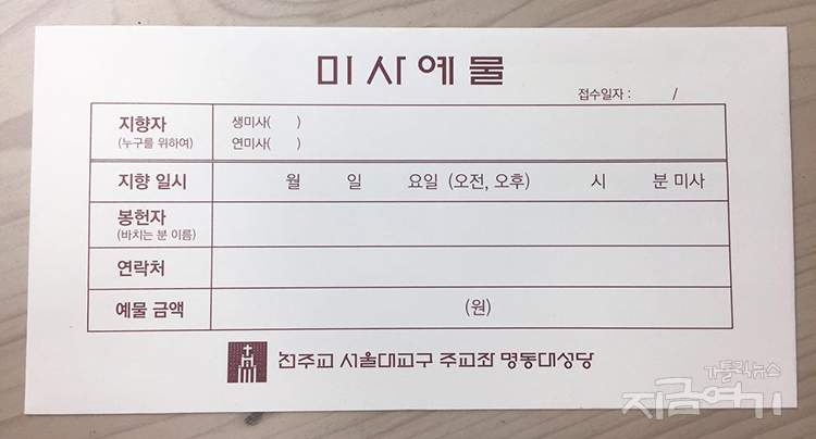 그런데 예기치 못한 일이 생겼다. 순례 첫날 제대 위에 수북이 쌓였던 메모지가 이튿날엔 눈에 띄게 줄어든 것이다. 사흘째던가, 교우 한 분이 내게 와서 말했다. “신부님, 예물을 안 내면 성의가 없어 보여 하느님이 기도를 안 들어주신다고 하는 사람도 있습니다. 그냥 받아서 좋은 일에 쓰시는 게 어떨까요?” 듣고 보니 그도 그럴 듯했다. 왜 나는 이다지도 귀가 얇을까? 미사 끝에 곧바로 정정 발언을 했다. “정성껏 미사예물을 바치고 싶은데 내지 말라니 서운하다는 교우가 있답니다. 정 그러시다면 하고 싶은 대로 하십시오. 뜻을 존중하겠습니다.” 다음 날부터 바로 한두 개의 예물봉투가 다시 제대 위에 놓였지만 순례가 끝나는 날까지 예전처럼 많지는 않았다. 이런 현상을 어떻게 이해해야 할지 나는 모르겠다.