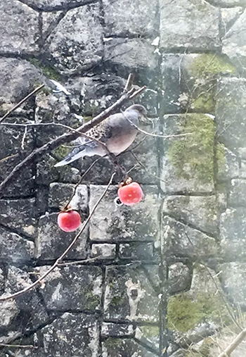 한참을 바라보며 이야기를 나누다 보니, 온갖 이유를 대며 감을 다 따자고 하던 제 자신이 부끄러워졌습니다. 제가 극구 우겨 저 감을 다 따서 부엌 창고에 쌓아 놓았다면 맛있는 감을 몇 개 더 먹을 순 있었겠지만, 저들이 먹을 것은 하나도 없었을 것이란 생각이 스쳤습니다. 맛있게 먹고 있는 새들을 보며, 그들은 안중에도 없었던 제 자신을 의식합니다.
