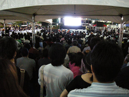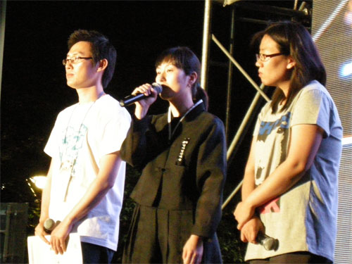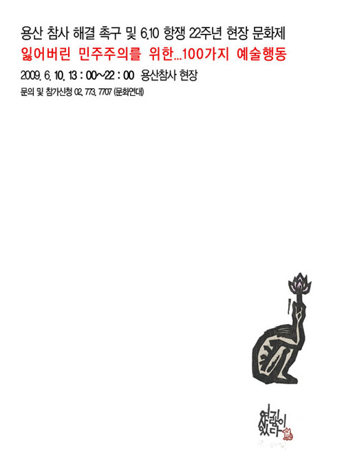 용산참사 현장에서 진행하는 촛불문화제와 행동하는 라디오 공개방송이 동시에 열렸습니다. 삶의 노래로 함께 하는 노동가수 지민주 님이 오셔서 가슴 뜨거운 노래들 같이 불렀습니다.