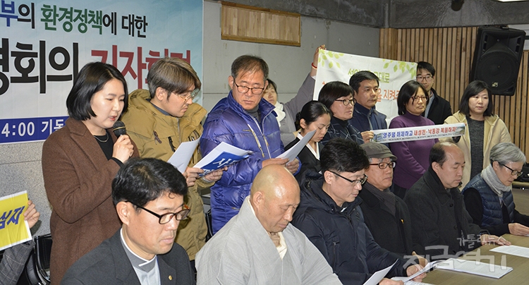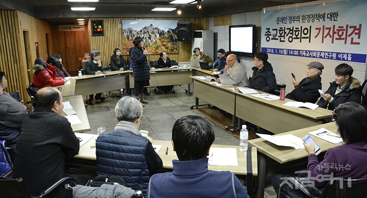 천주교, 개신교, 불교, 원불교, 천도교 등 5대 종단 환경단체가 모인 종교환경회의는 1월 15일 서울 서대문구 기독교사회문제연구원에서 워크숍과 기자회견을 열고, “정부의 지난 8개월여의 환경 관련 정책과 실행 과업들의 진정성에 심각하게 문제를 제기한다”고 밝혔다.