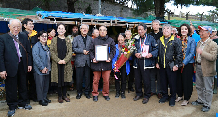 지학순정의평화기금은 1월 22일 오키나와 헤노코 항구의 천막농성장에서 ‘해상 헬기 기지 건설 반대 평화와 나고 시정 민주화를 위한 협의회’(헬기기지반대협의회)에 제21회 지학순정의평화상을 줬다.